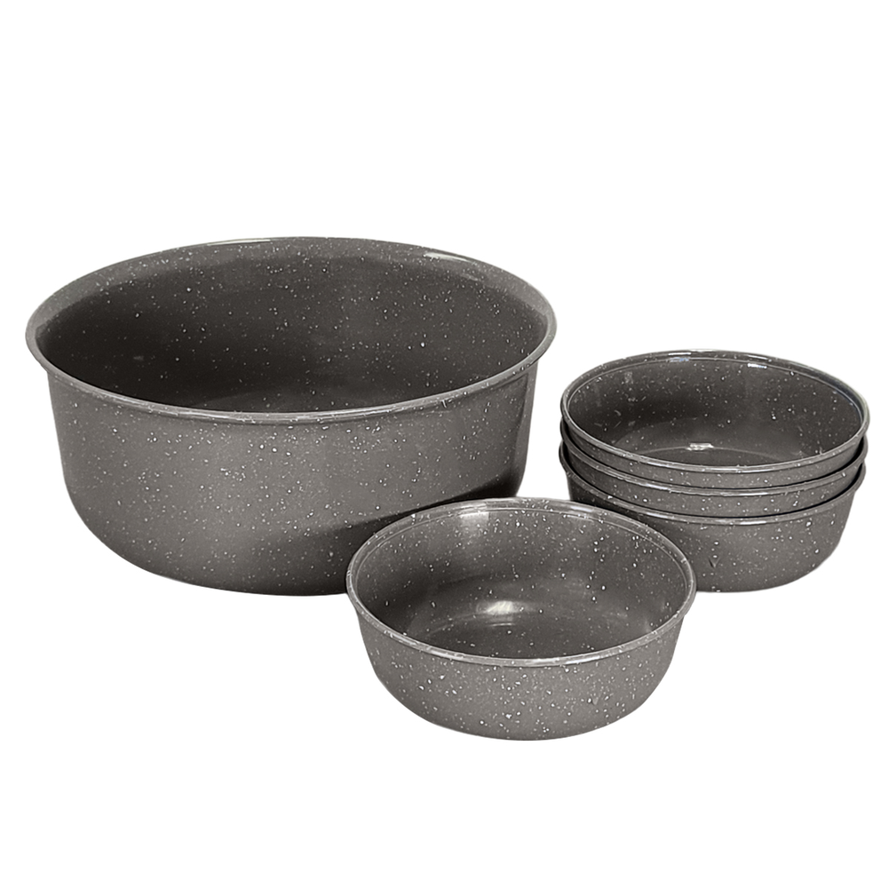 ENSALADERA + 4 COMPOTERAS PP COLOR ENLOZADO